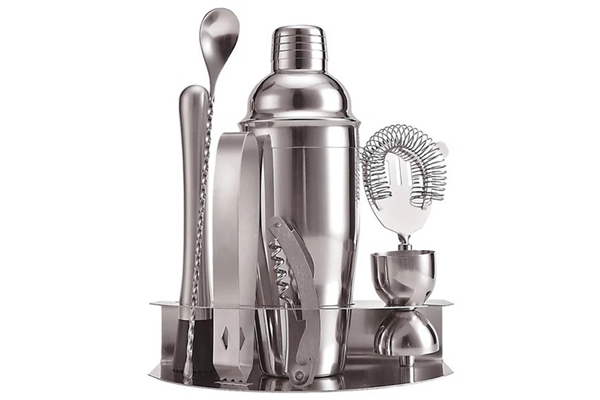 This Bartender 8 Piece Stainless Steel Cocktail Set with stand is essential for any home bar setup or cocktail enthusiast.