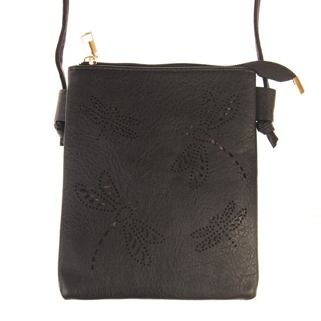 Dragonfly cutout phone bag with long across body strap. 100% polyurethane. Size: H19cm x W15.5cm.