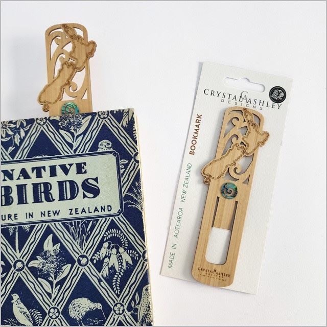 Handcrafted NZ Map bookmark, designed and made right here in New Zealand. Made from sustainable materials, including bamboo and ethically sourced Paua. Size: 33mm x 130mm x 2mm thick.