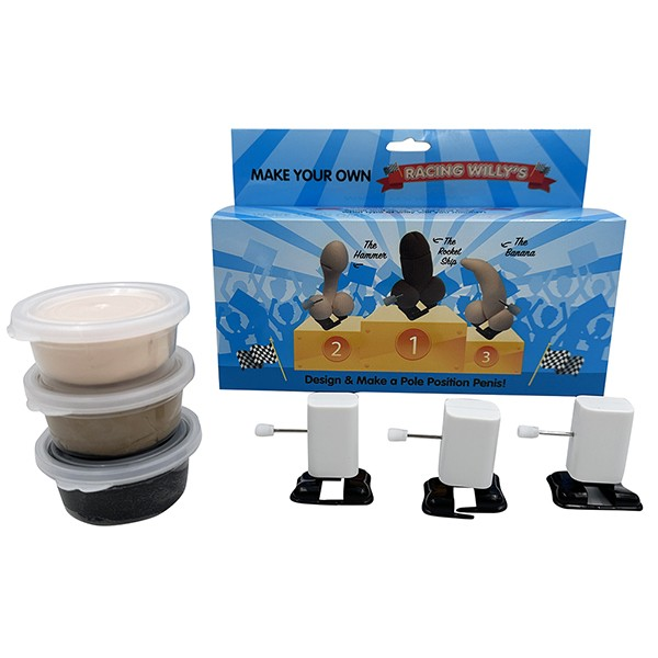 Introducing DIY Racing Willies, the ultimate source of creative amusement. With this captivating product, you get the chance to sculpt your very own miniature willys from scratch, using three pots of v colored dough included in every pack. Shape them, mold them, and bring your unique characters to life. Once your customized willys are ready, wind them up and set them free to watch them dash across any flat surface. The laughter and excitement are endless as you compete with your friends and family to see whose willy goes the farthest or fastest. DIY Racing Willies is an extraordinary blend of hands-on crafting and thrilling racing action, promising countless hours of entertainment and a load of giggles. Get ready to unleash your creativity and join in on the willy-racing fun!