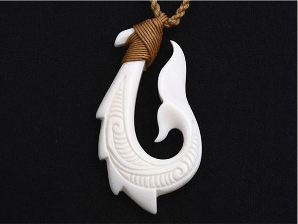Fish hook & whale tail bone pendant. SIZE:58X30 mm. With gift box, meaning, cord. 100% handcrafted.