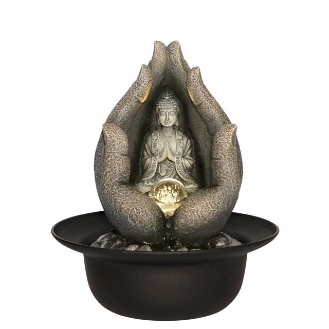 Water fountain with Warm natural light and glass ball. Made from polyresin. Not suitable for outdoors. Comes with an SAA approved 240v lead. H:28 x W:23.5 x D:23.5cm.
