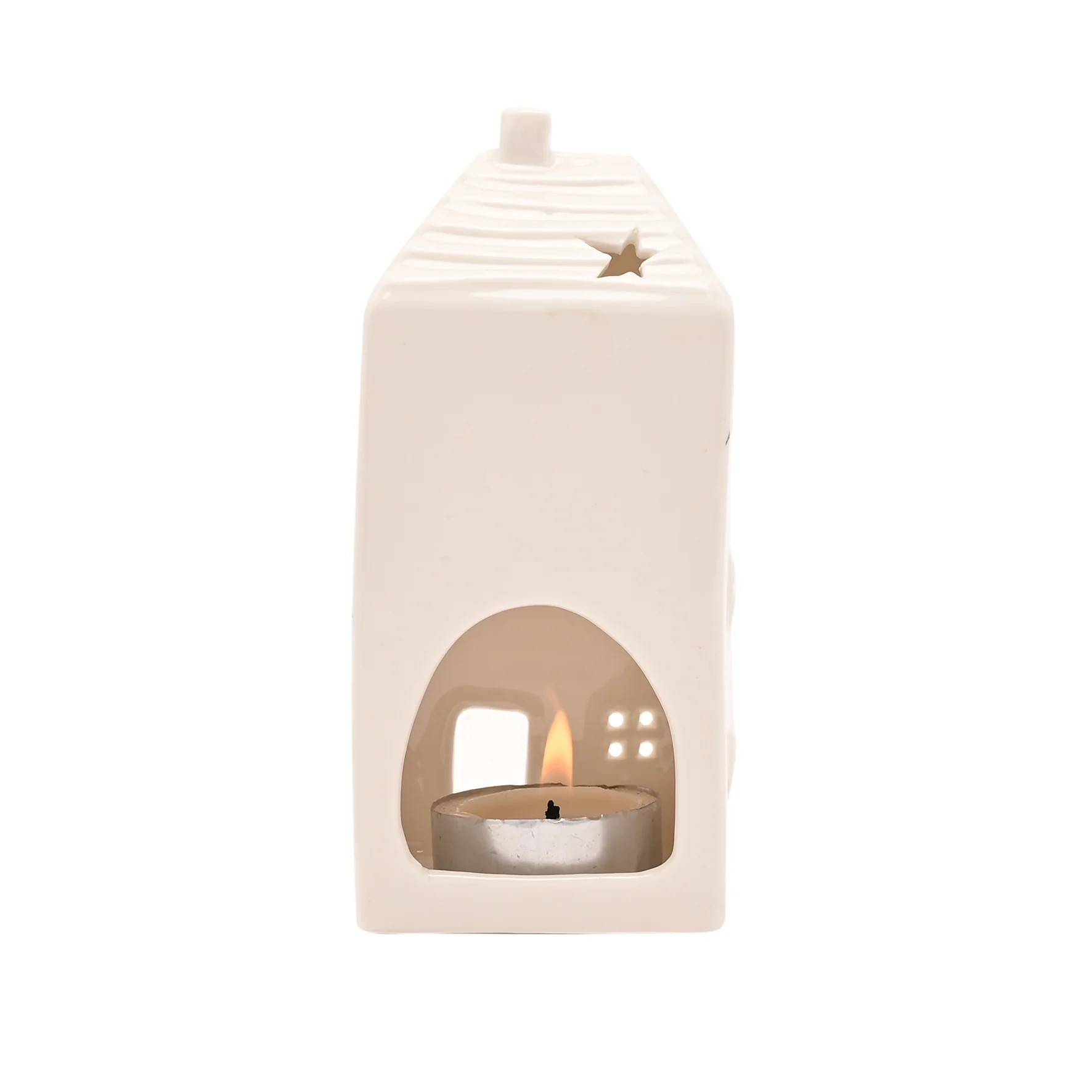 The Moments Little Houses tealight holder is crafted from high-quality ceramic, designed to create a warm, inviting ambiance in any space. Its charming miniature house shape adds a touch of charm and comfort to your décor, while safely containing the tealight candle’s flame.