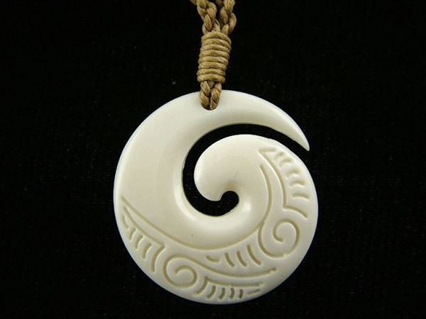 Koru bone carving pendant. SIZE:30X30 mm. With gift box, cord, meaning / 100% handcrafted.