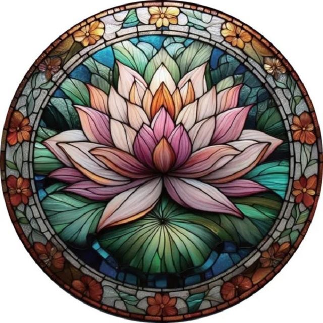 Lotus Flower Stained Glass Hanger. 30 x 30 cm (Length x Height).