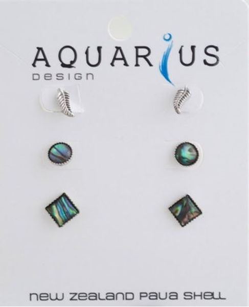 Simply Stunning New Zealand Natural Paua Fern Circle Square 3 pair set Earrings.
