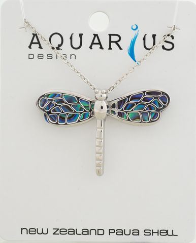 This Attention-getting New Zealand Natural Paua backed wings Dragonfly Pendant comes on an 18 inch chain with a 3 inch extender. Dragonfly measures 43mm wide and 29mm length.