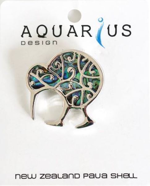 Light up your look with this Beautiful Filigree Kiwi Brooch. made with New Zealand Natural Paua. It measures 33mm wide and 34mm High.