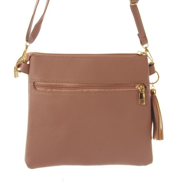 Back zipper pocket and matching tassle. 100 % polyurethane. Size 23x24cm.