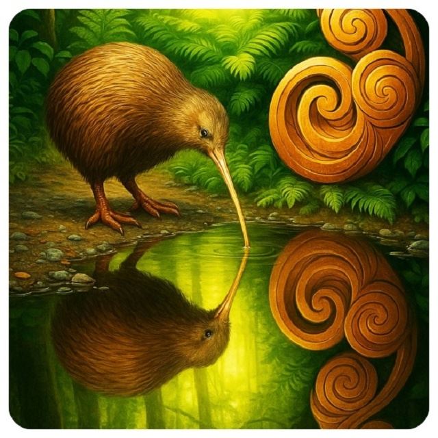 Coaster kiwi reflection