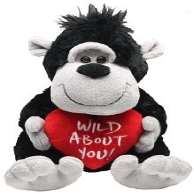 Black Gorilla Holding Heart embroidered with Wild About You. 31cm high.