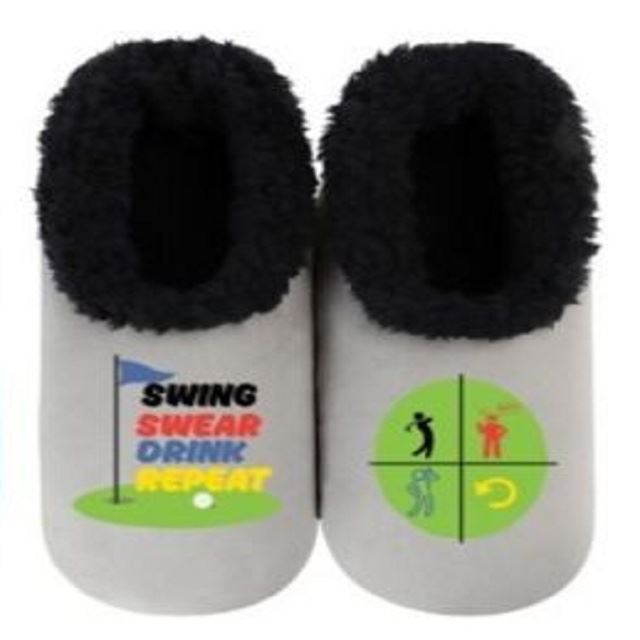 Slumbies Pairables Golf - Mens. Machine Washable! Non-slip soles! Soft, fluffy sherpa fleece lining! Size: Large (10-11)