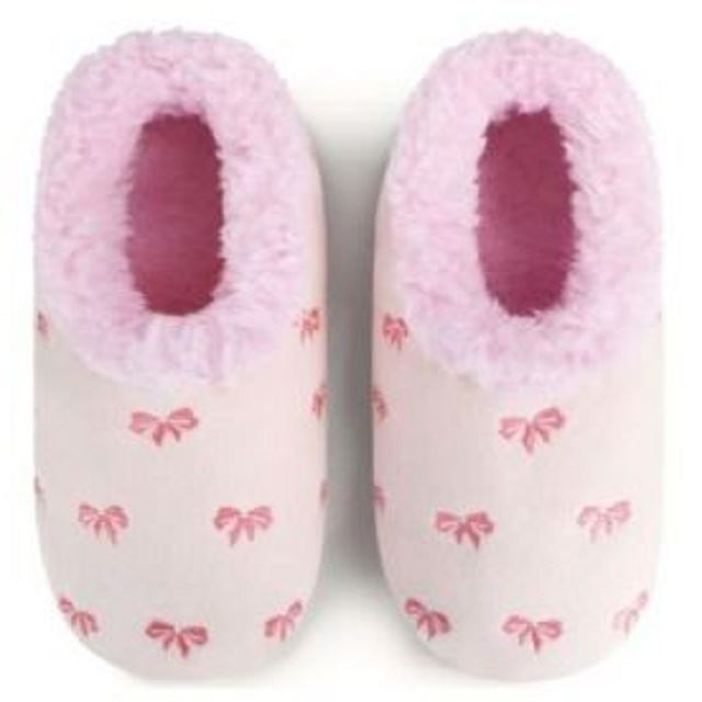 Slumbies Bow-Utiful Pink - Womens. Machine Washable! Non-slip soles! Soft, fluffy sherpa fleece lining! Size: Large (9-10)