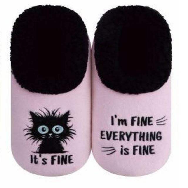 Slumbies Pairables Pink Cat Fine - Womens. Machine Washable! Non-slip soles! Soft, fluffy sherpa fleece lining! Size: Large (9-10)