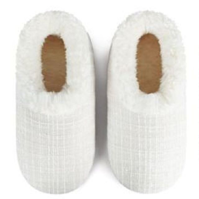Slumbies Sparkle Tweed Cream - Womens. Machine Washable! Non-slip soles! Soft, fluffy sherpa fleece lining! Size: Medium (7-8)