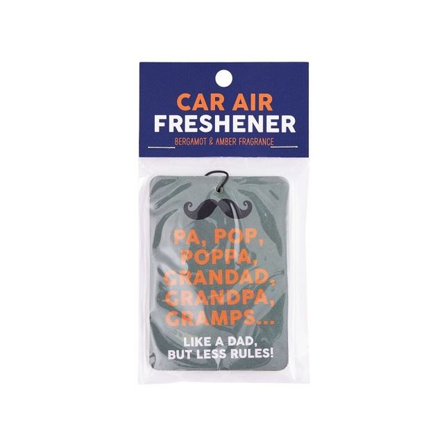 Infused with a pleasant scent that freshens up cars, offices, or small spaces. Conveniently attaches to rearview mirrors, hooks, or handles. Features a heartfelt message to brighten Dad's day. Size: 5.5 x 1 x 7cm.