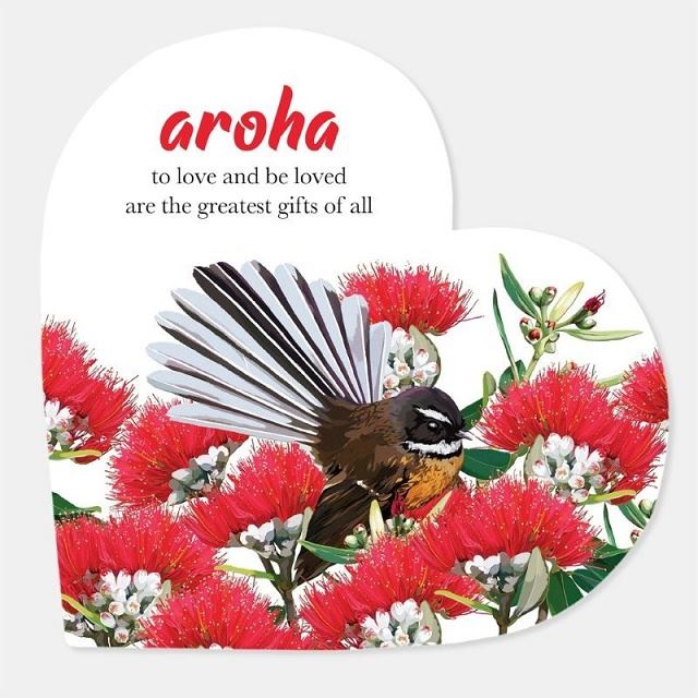Standing Ceramic Heart - Aroha Fantail. Size: L12xH14xW2cm.