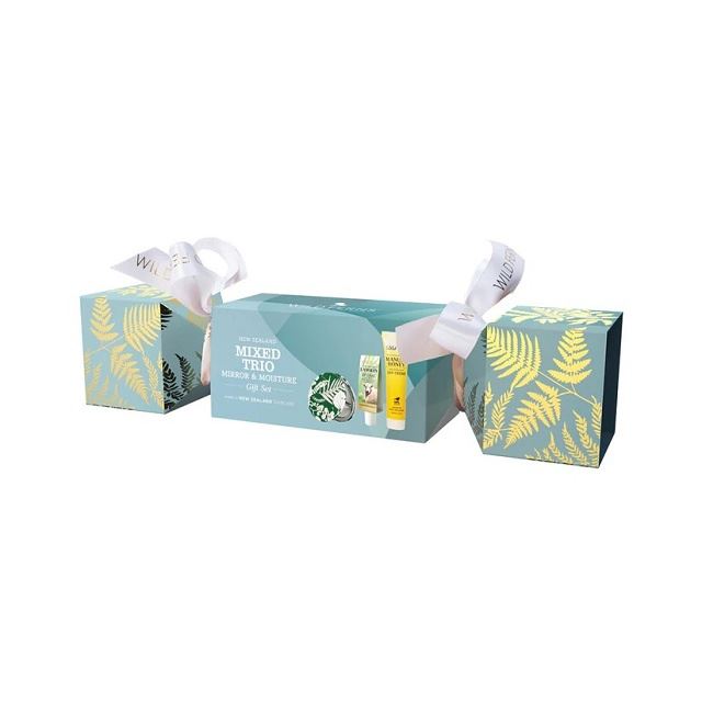 Wild Ferns mixed cracker - 1 x Lanolin Lip Care SPF15 12ml, 1 x Manuka Honey Day Creme 30ml, 1 x Compact Mirror.